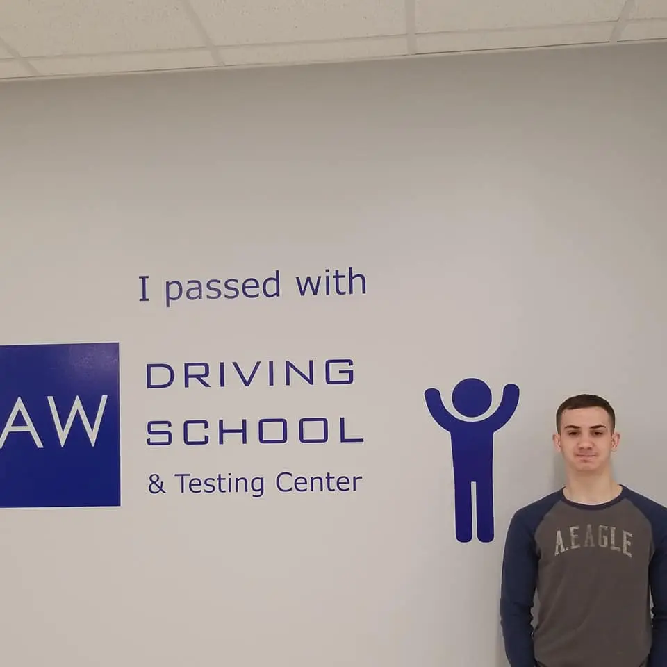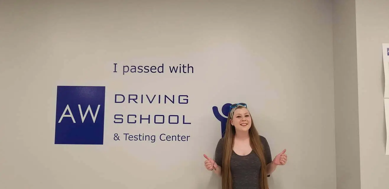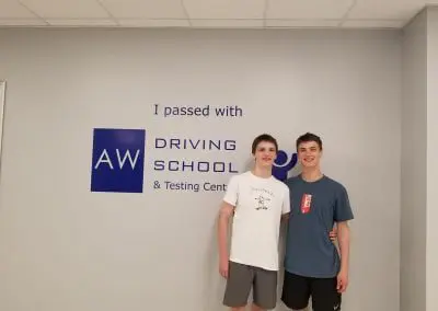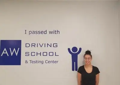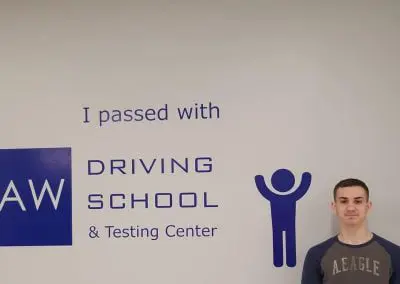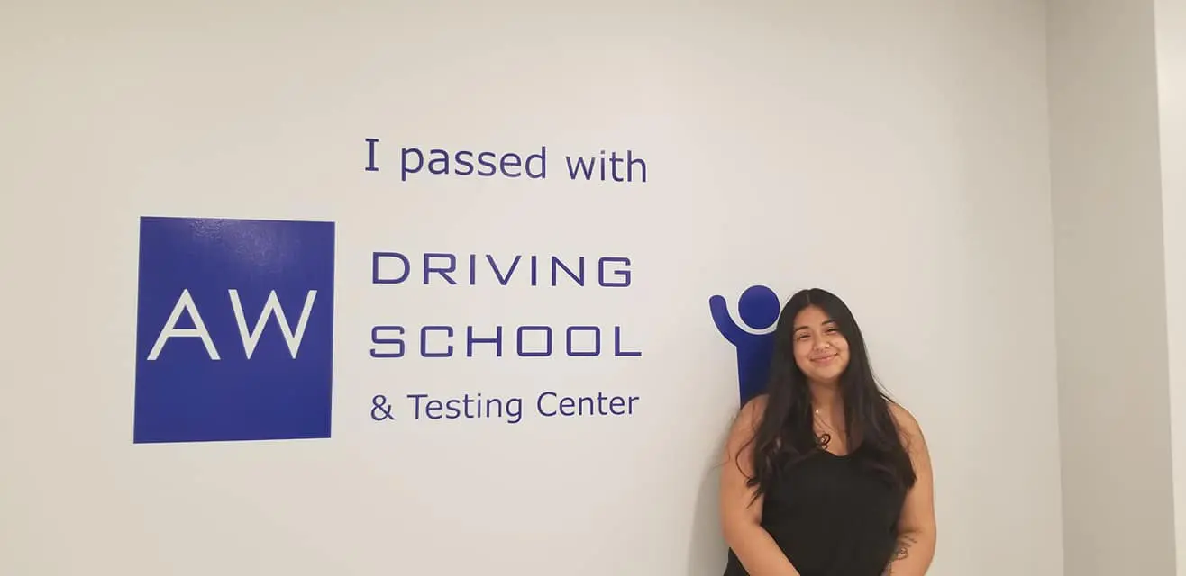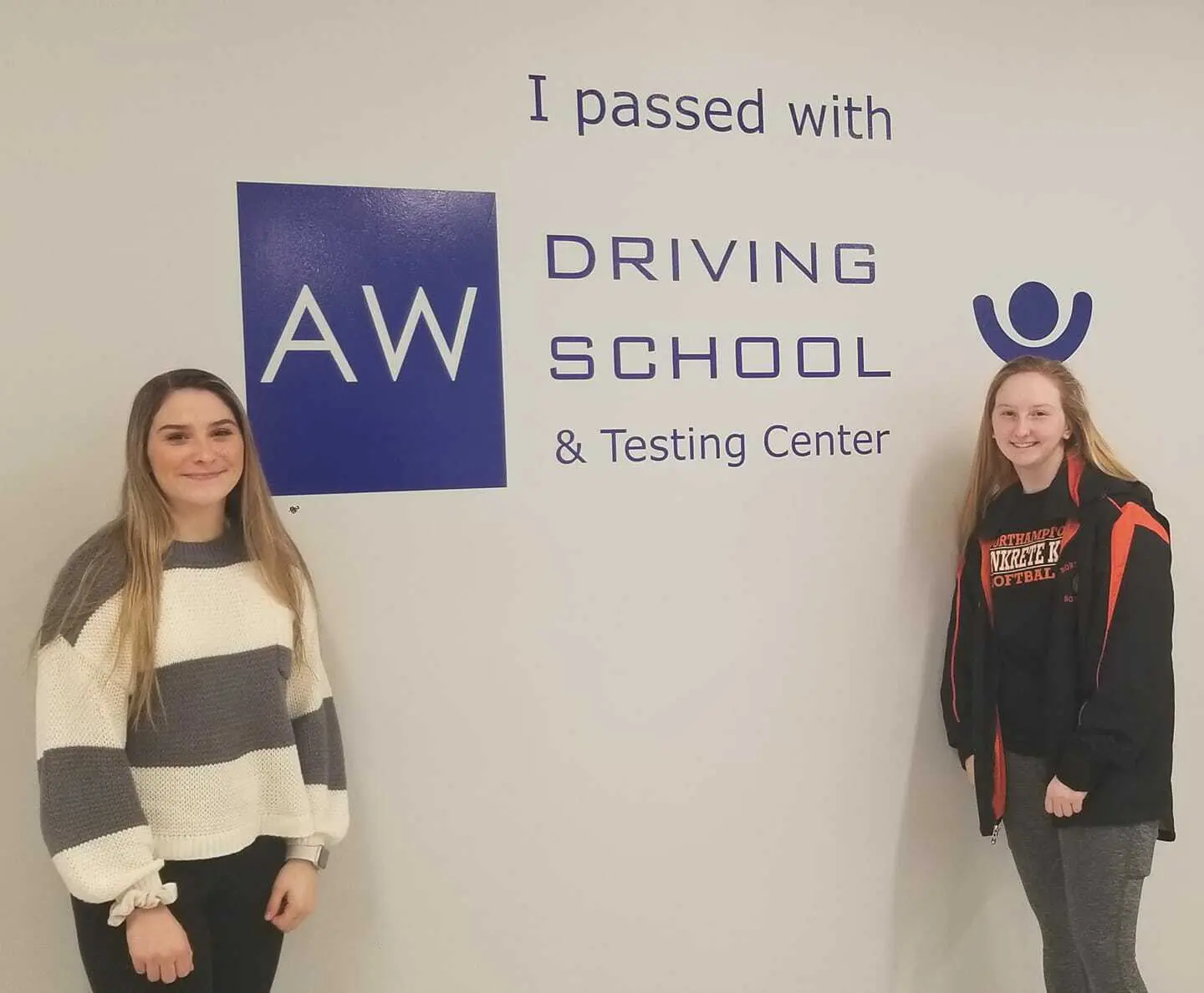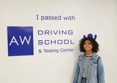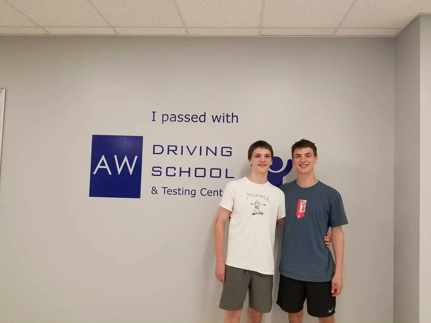 You will see signs for AW Trucking School & Testing Center and AW Driving School & Testing Center.