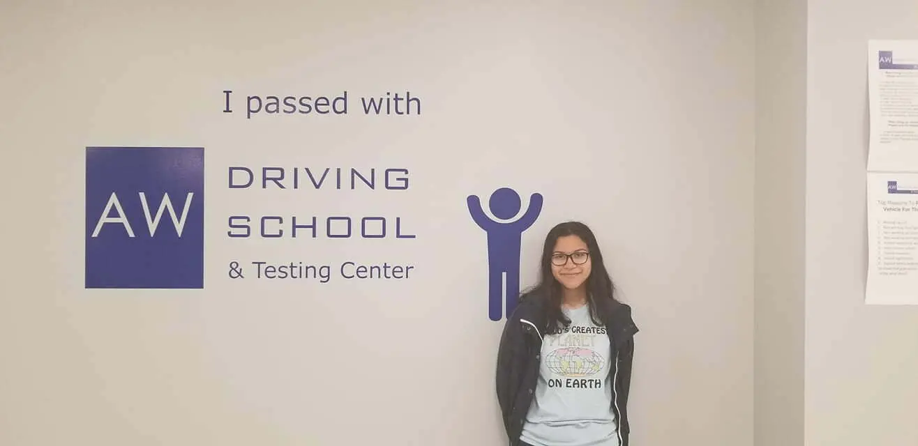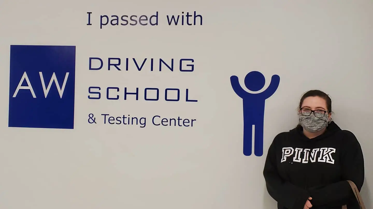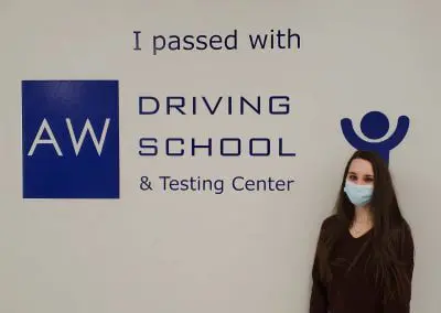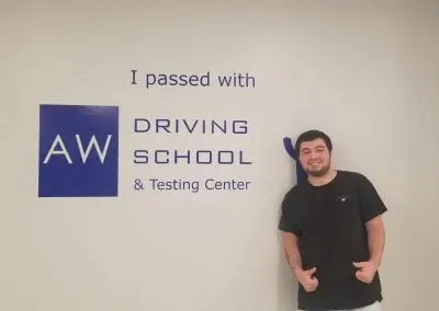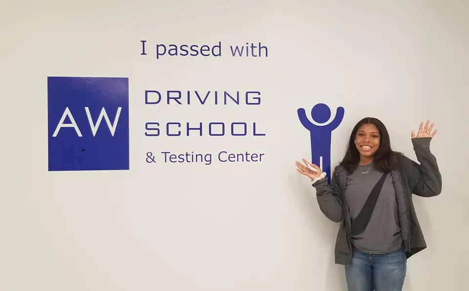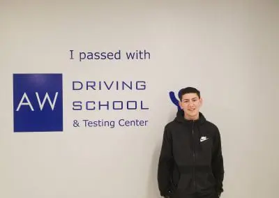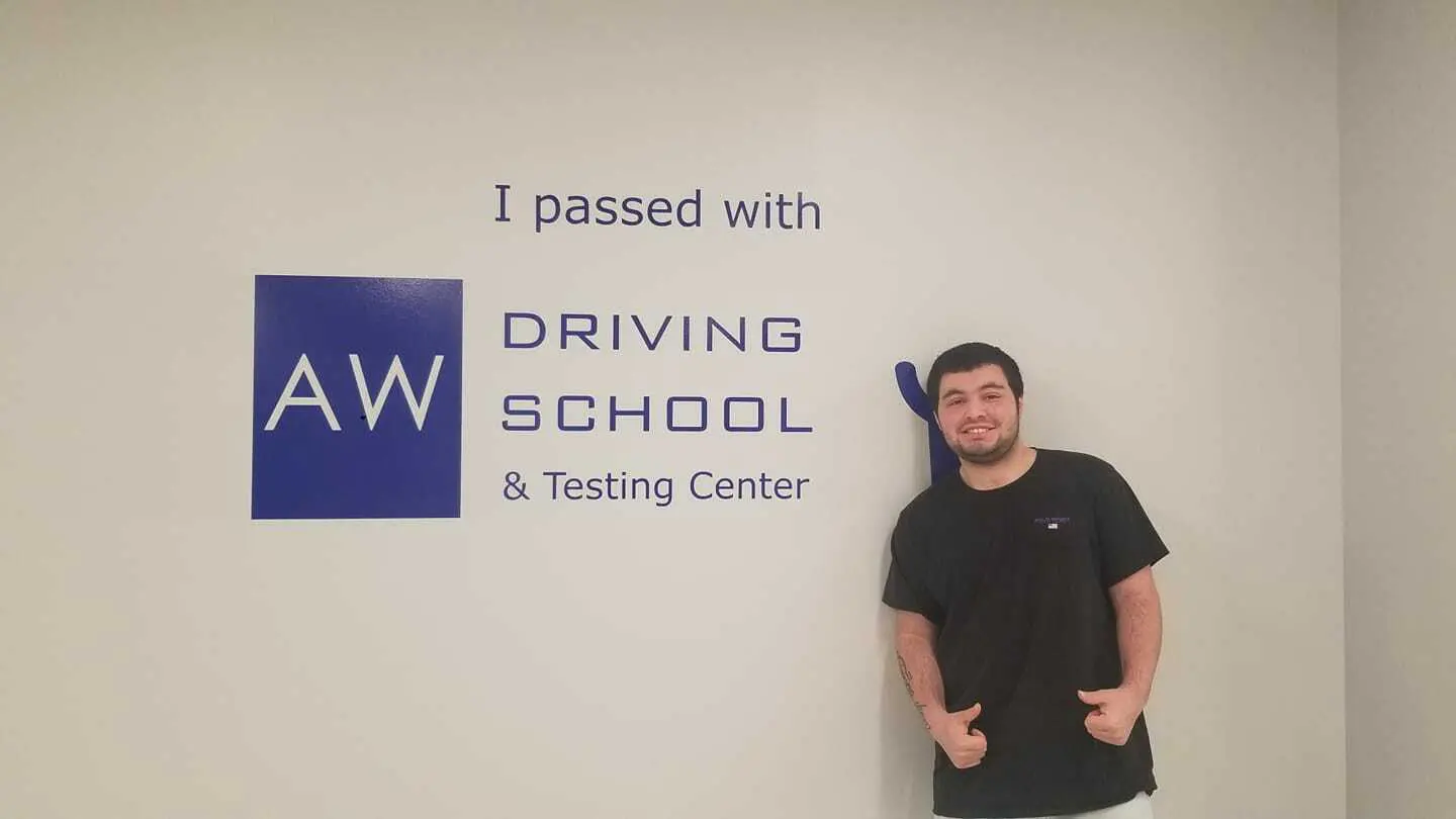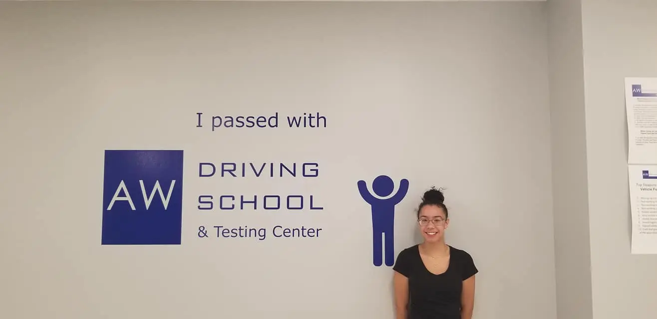 You will see signs for AW Trucking School & Testing Center and AW Driving School & Testing Center.