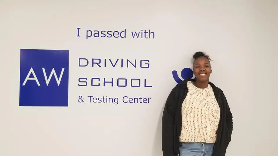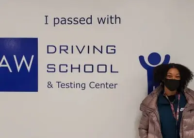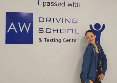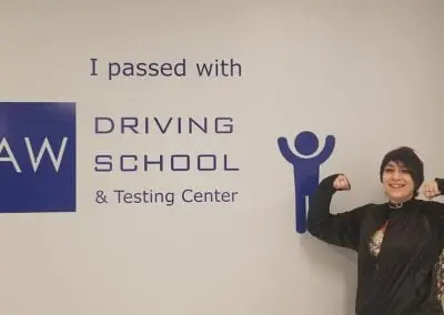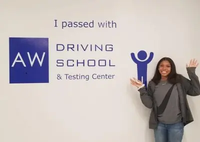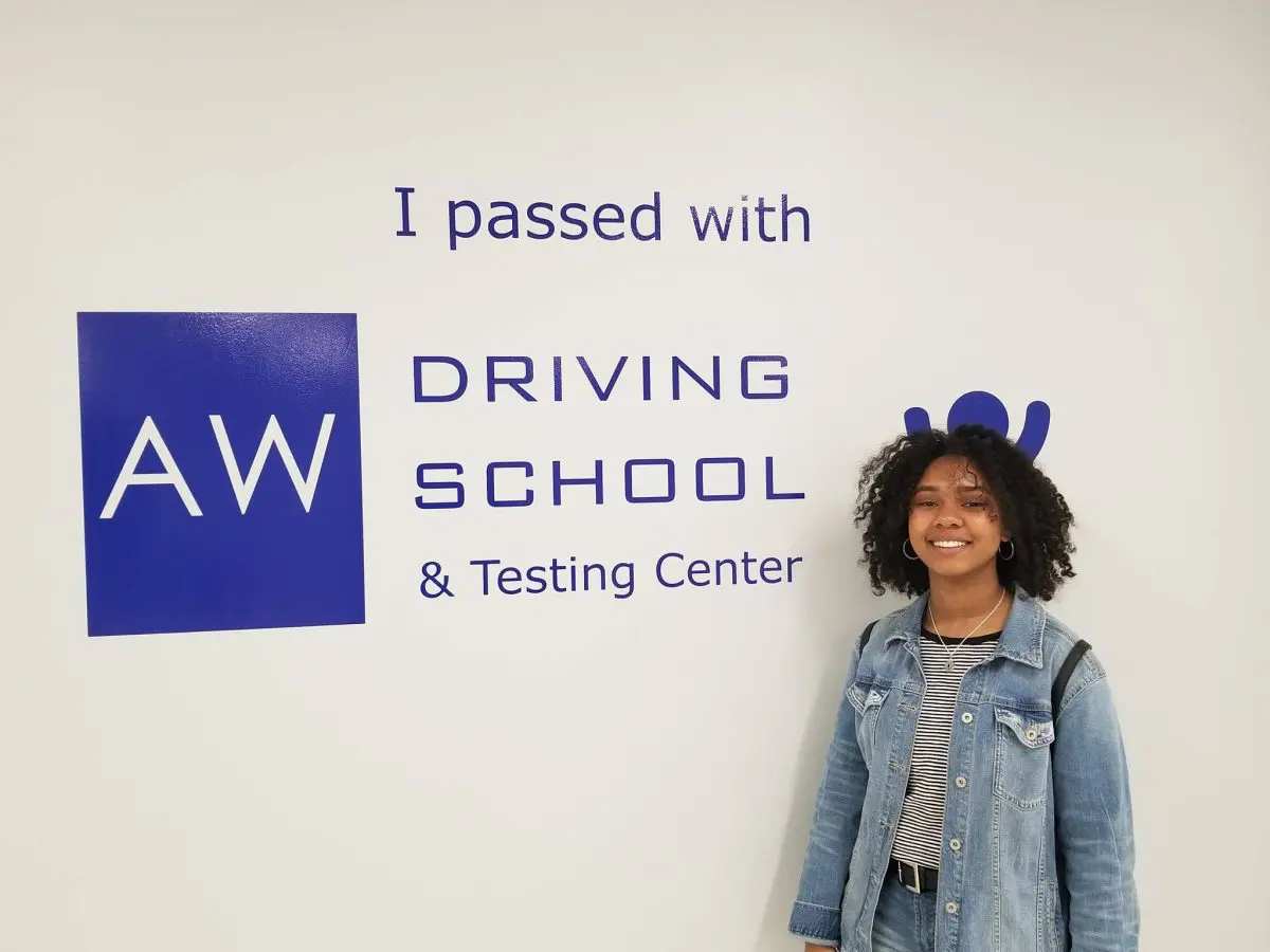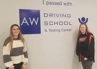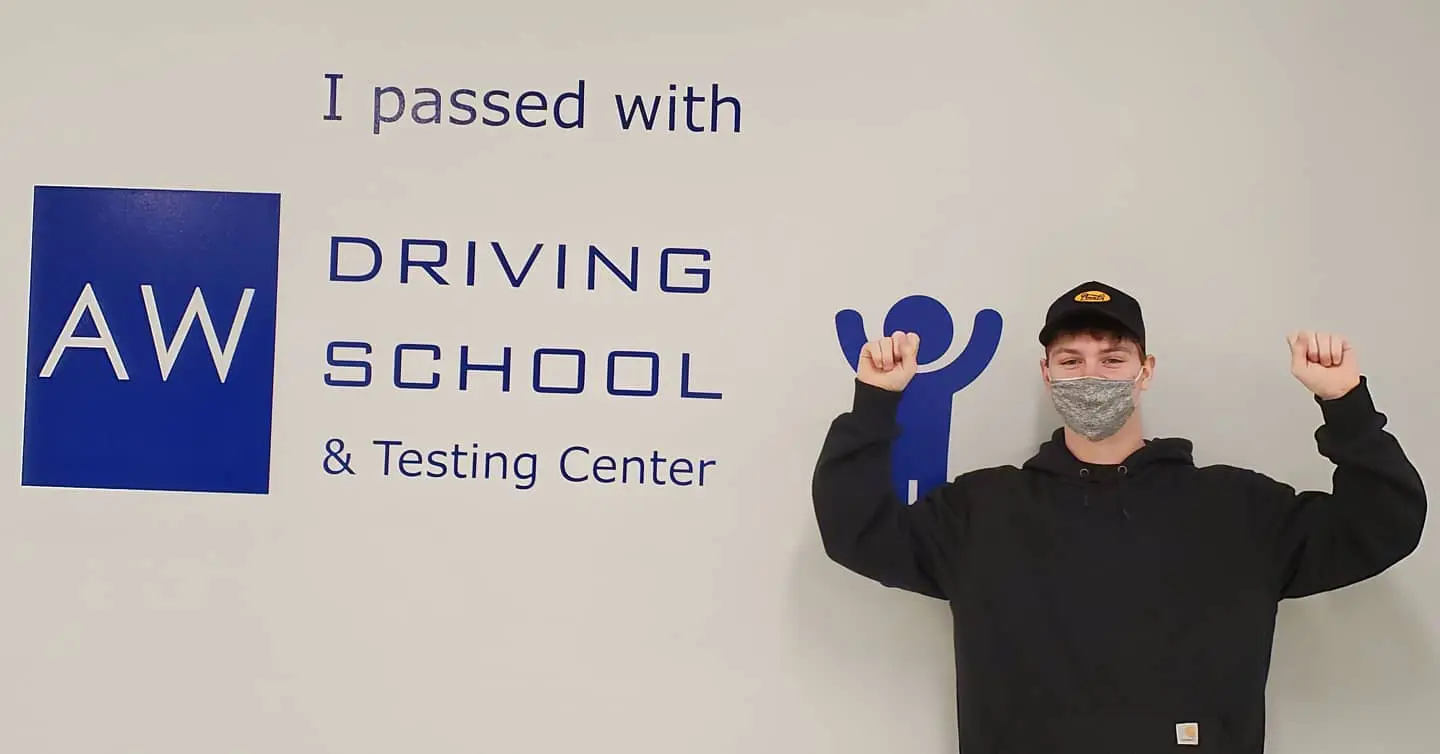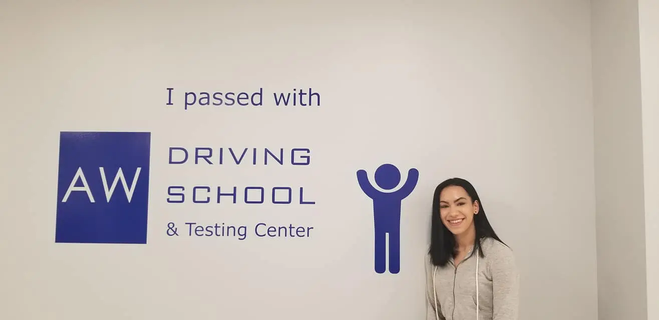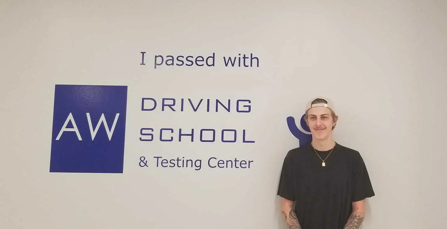 You will see signs for AW Trucking School & Testing Center and AW Driving School & Testing Center.