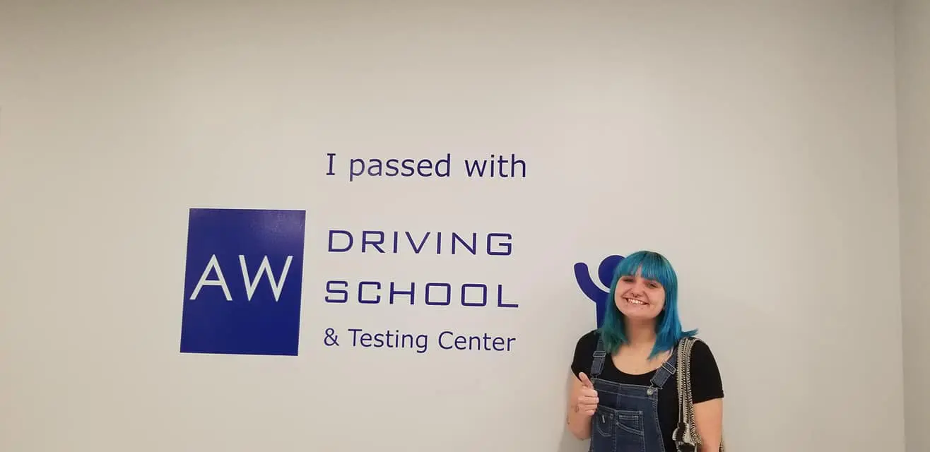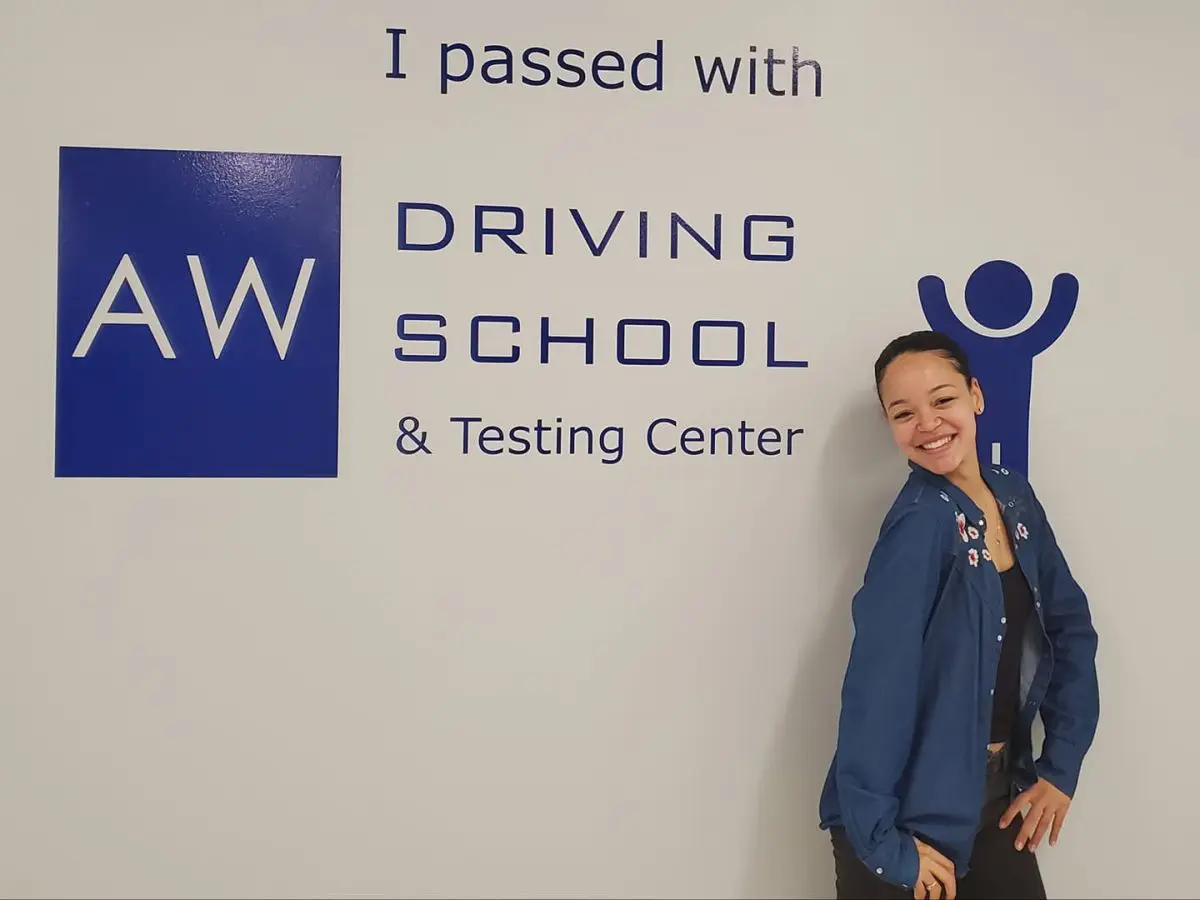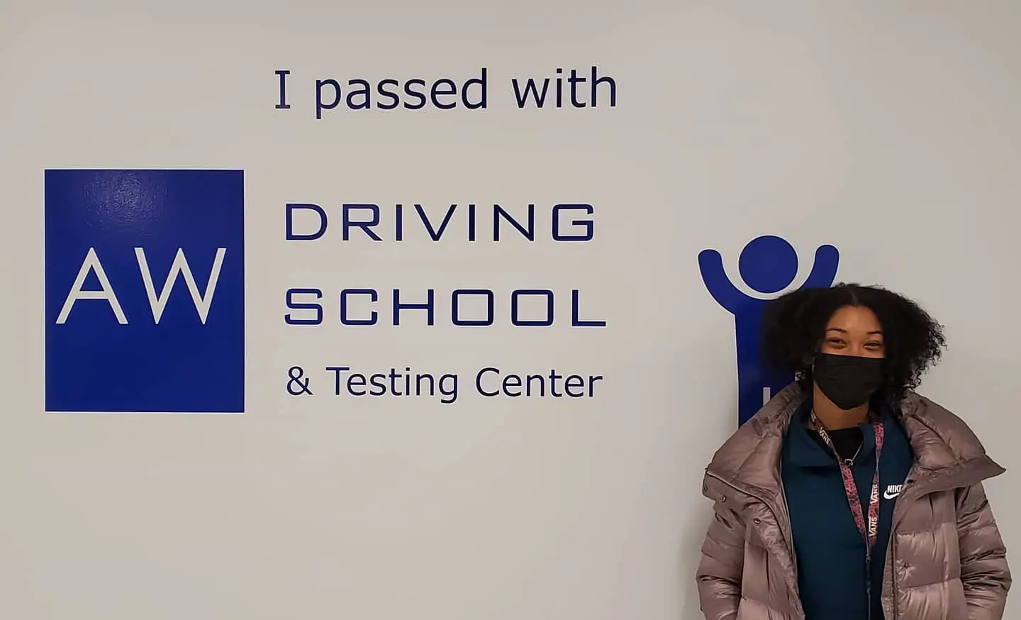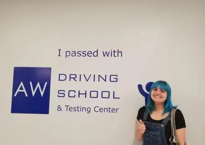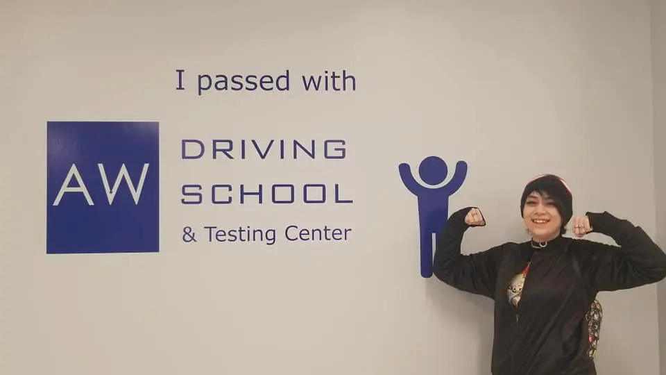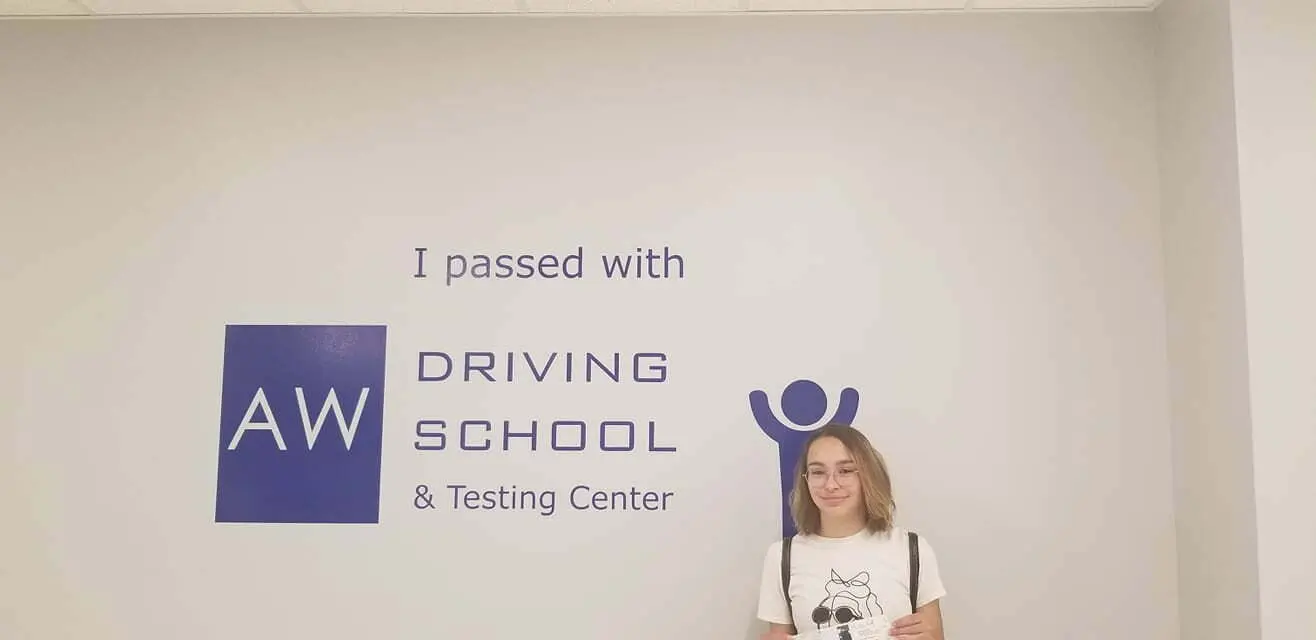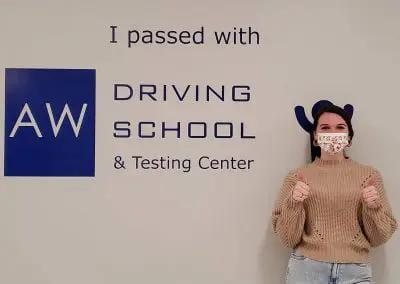 You will see signs for AW Trucking School & Testing Center and AW Driving School & Testing Center.