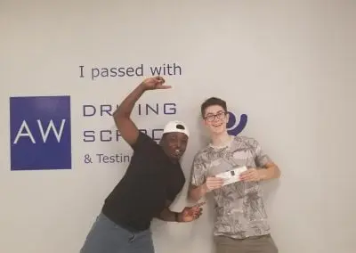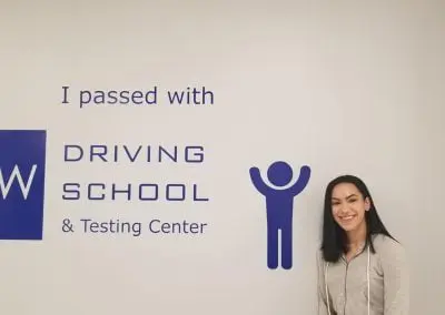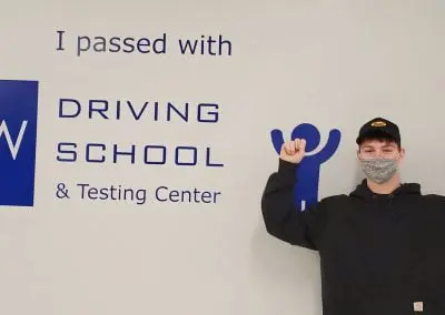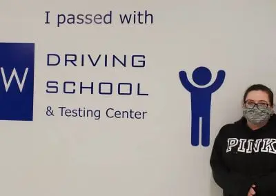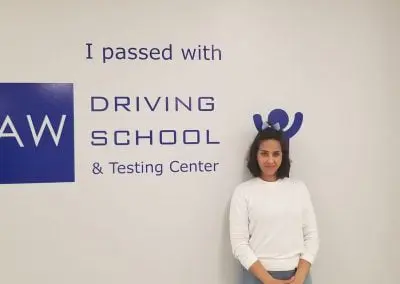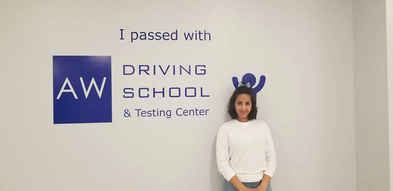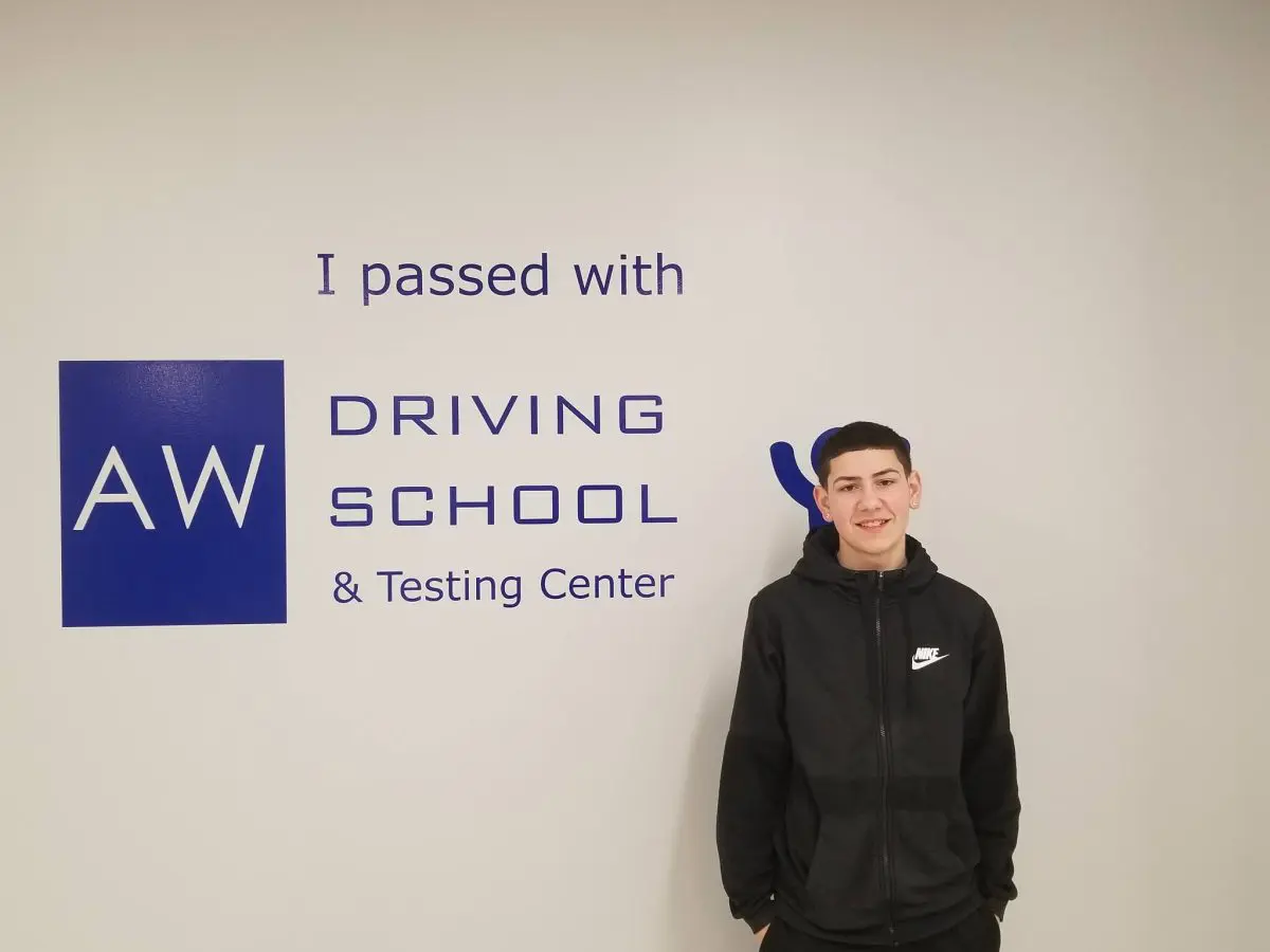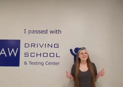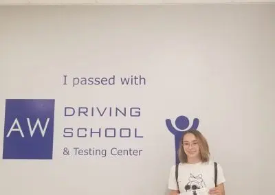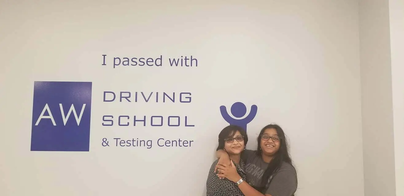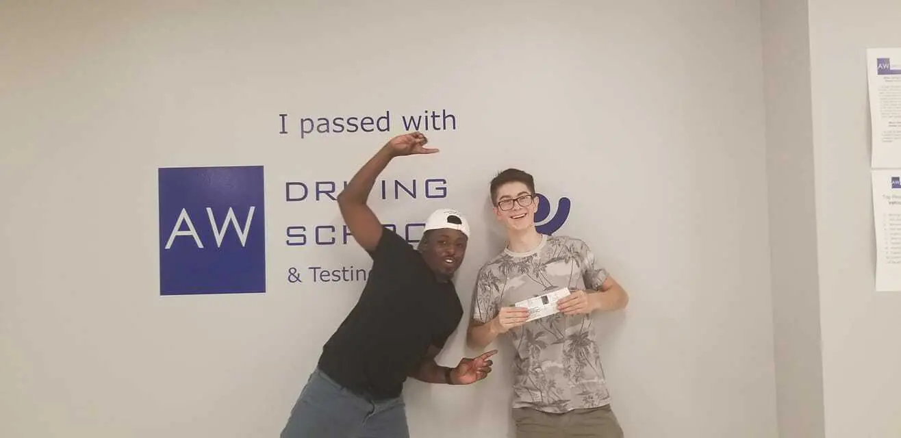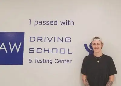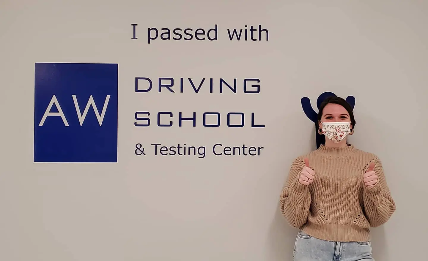 You will see signs for AW Trucking School & Testing Center and AW Driving School & Testing Center.